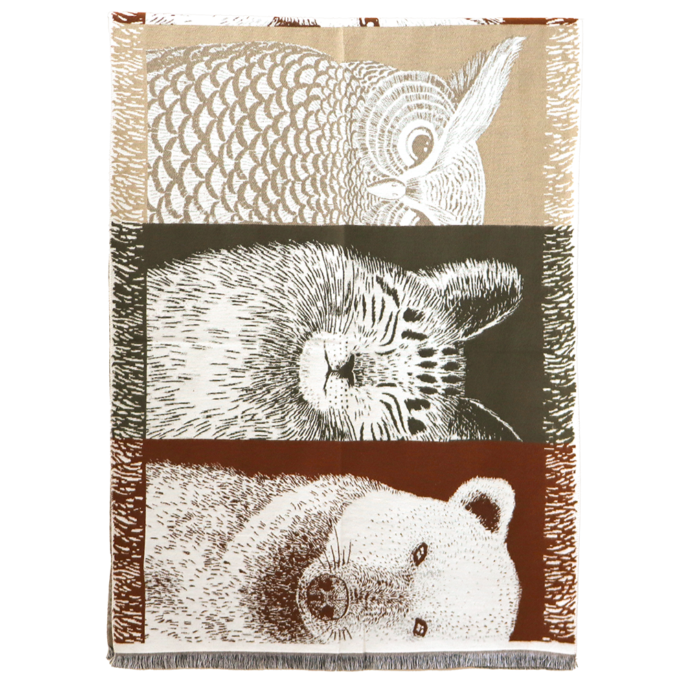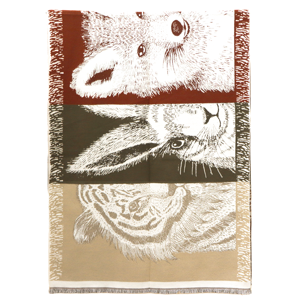 Kétoldalas sál állatmintával – bordó/világosbarna
