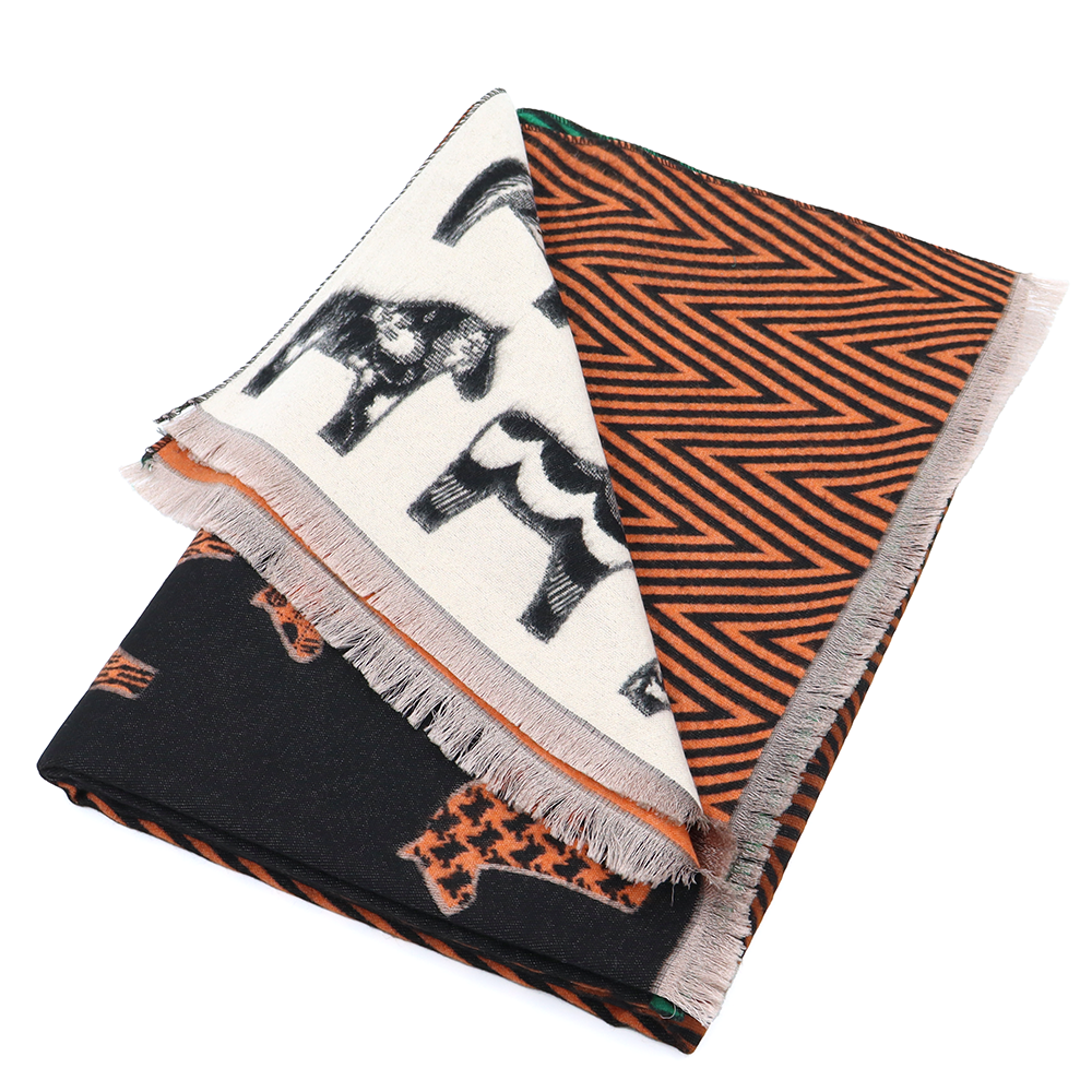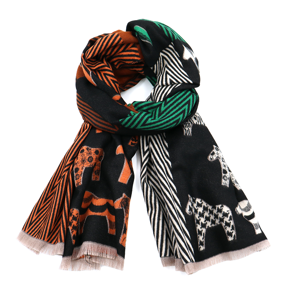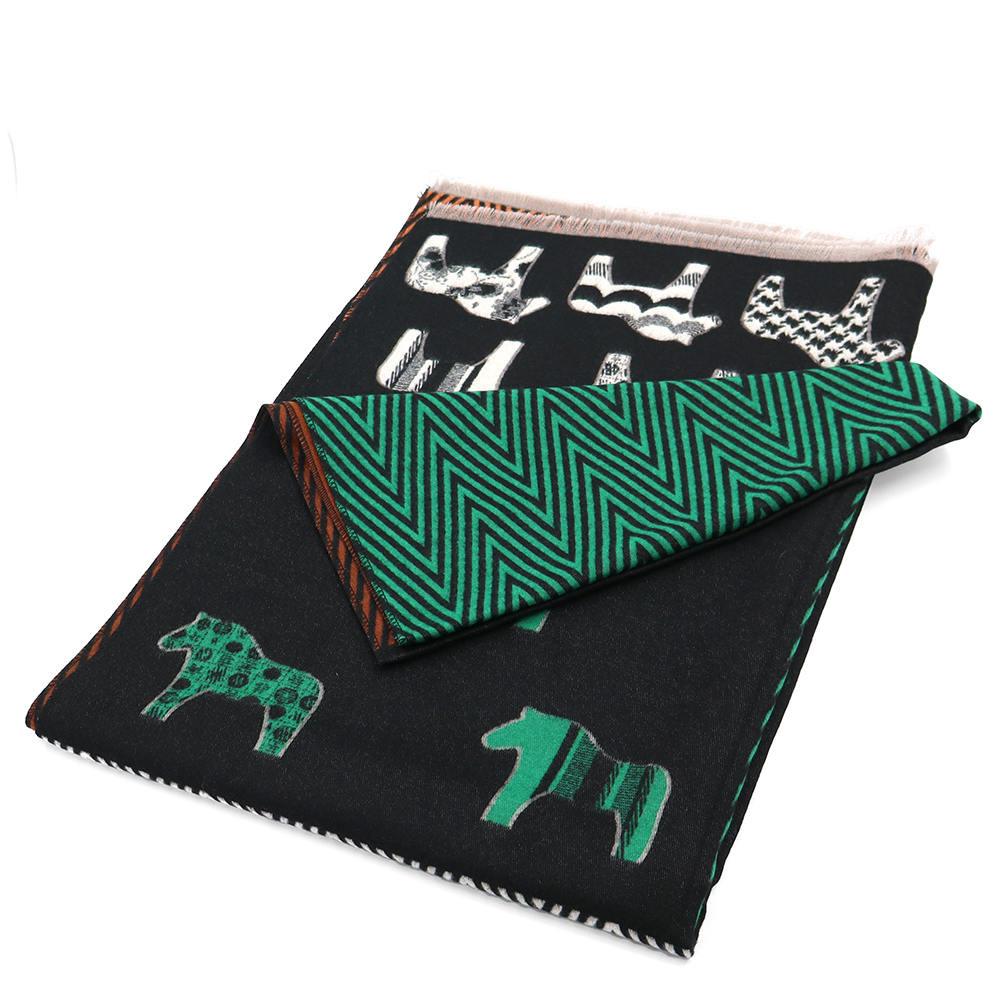 Kétoldalas sál ló mintával – zöld/téglabarna