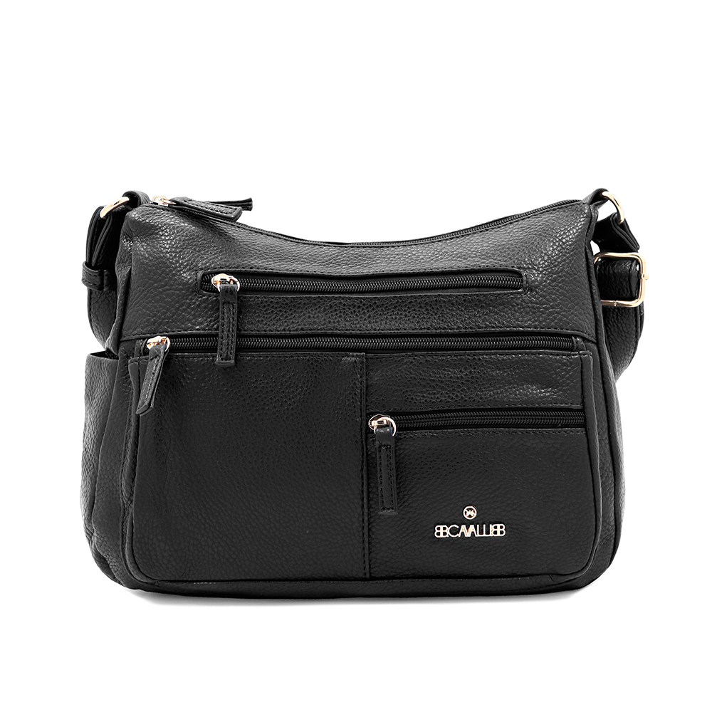Kétrekeszes női válltáska sok zsebbel – fekete