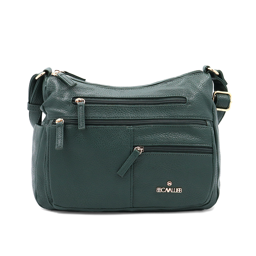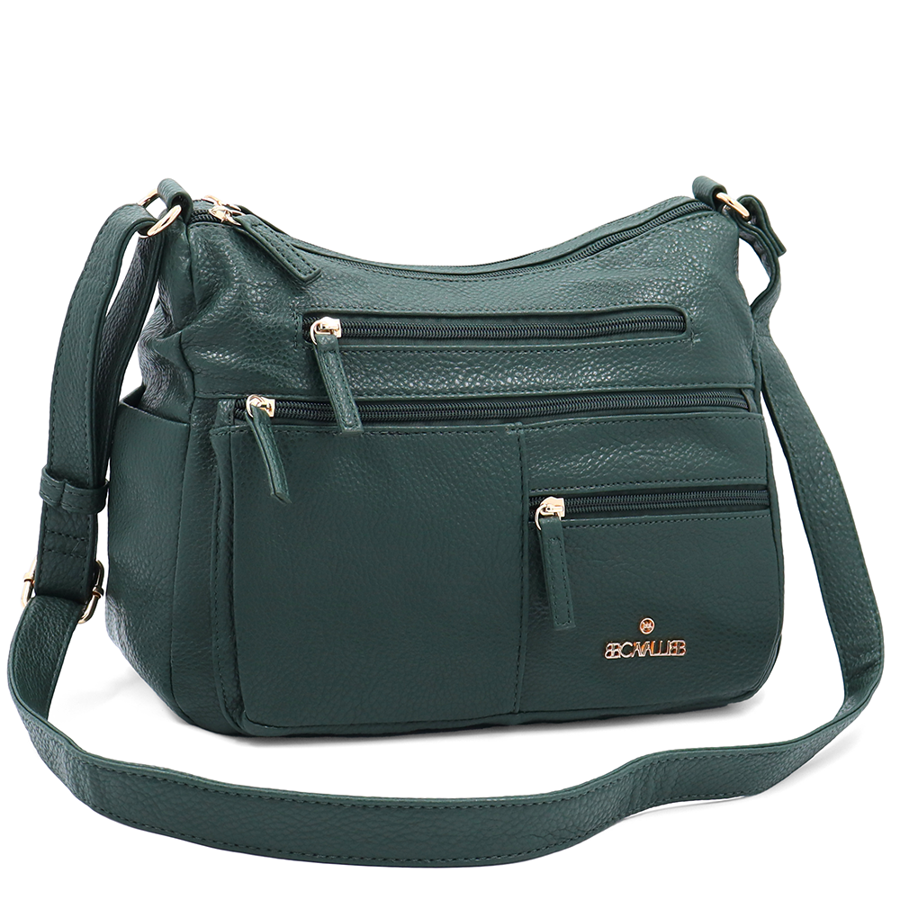 Kétrekeszes női válltáska sok zsebbel – zöld