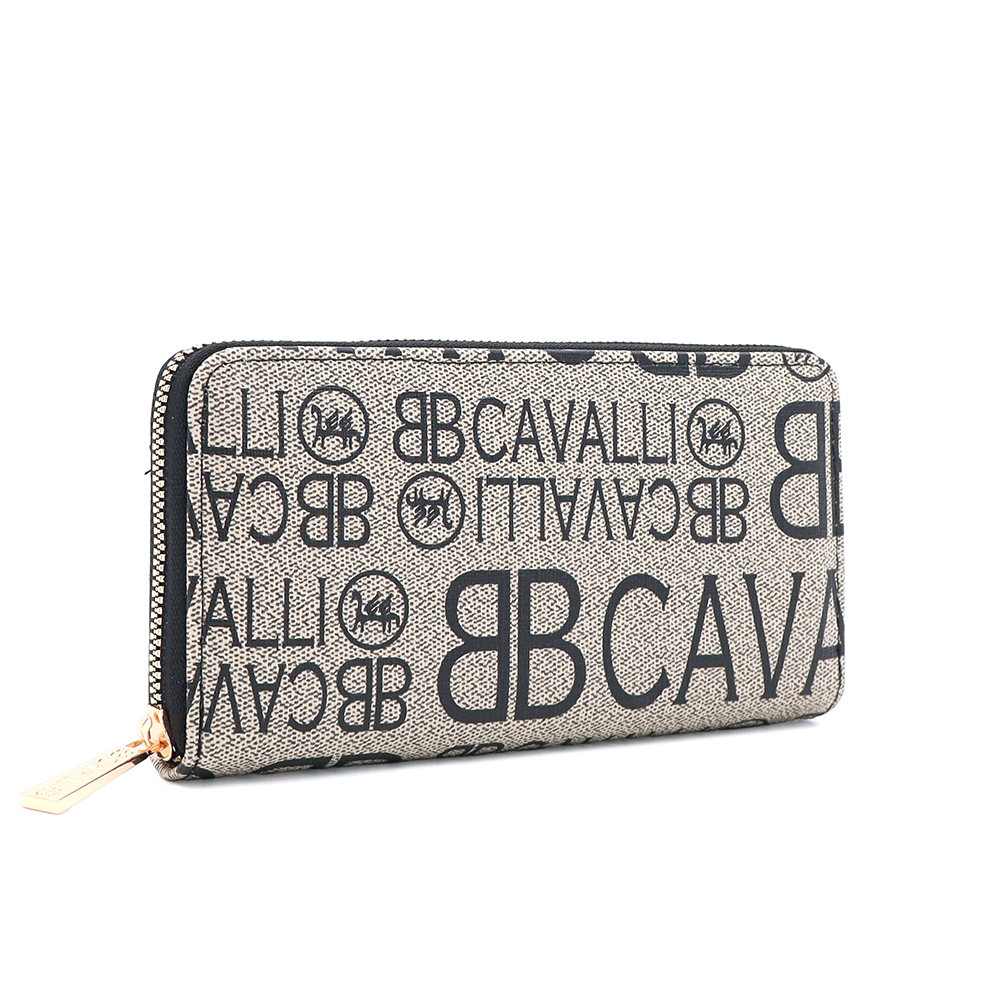 Nagy méretű női pénztárca mintával – bézs/fekete