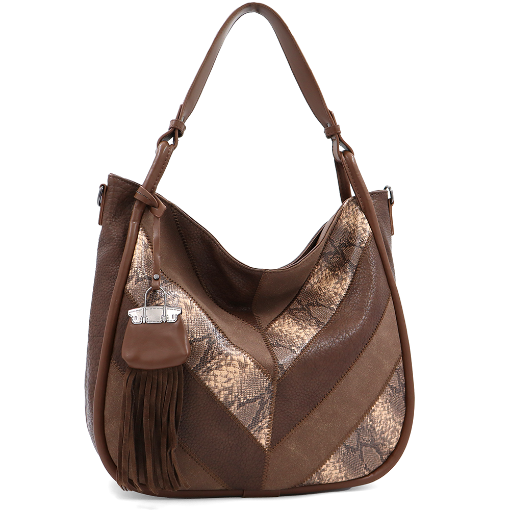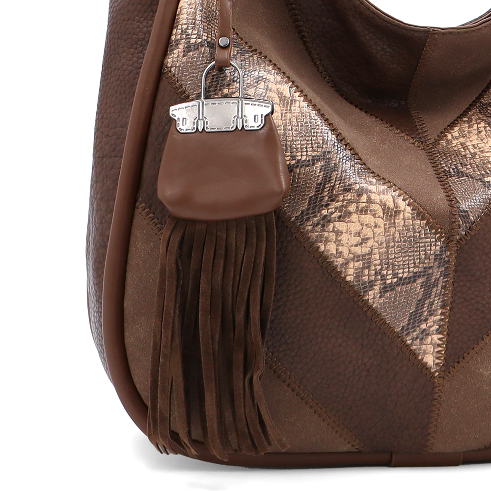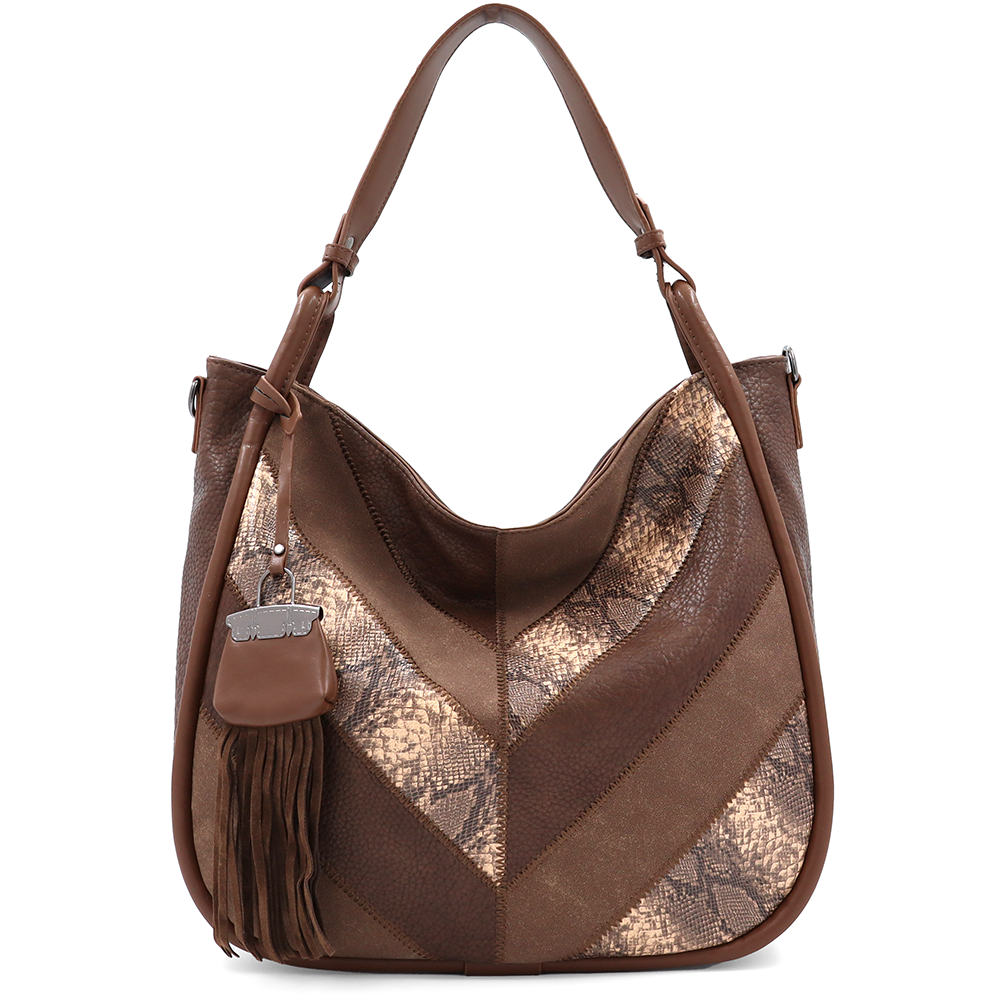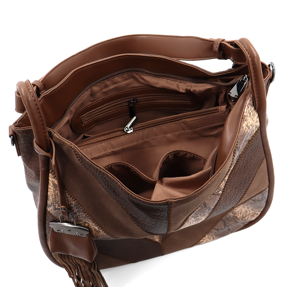 Nagy méretű női táska, kígyóbőr mintás – világosbarna