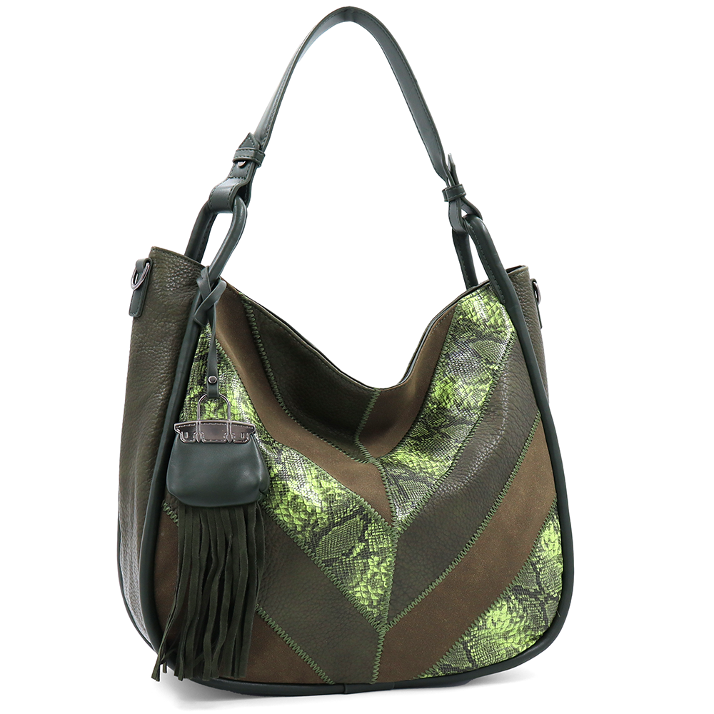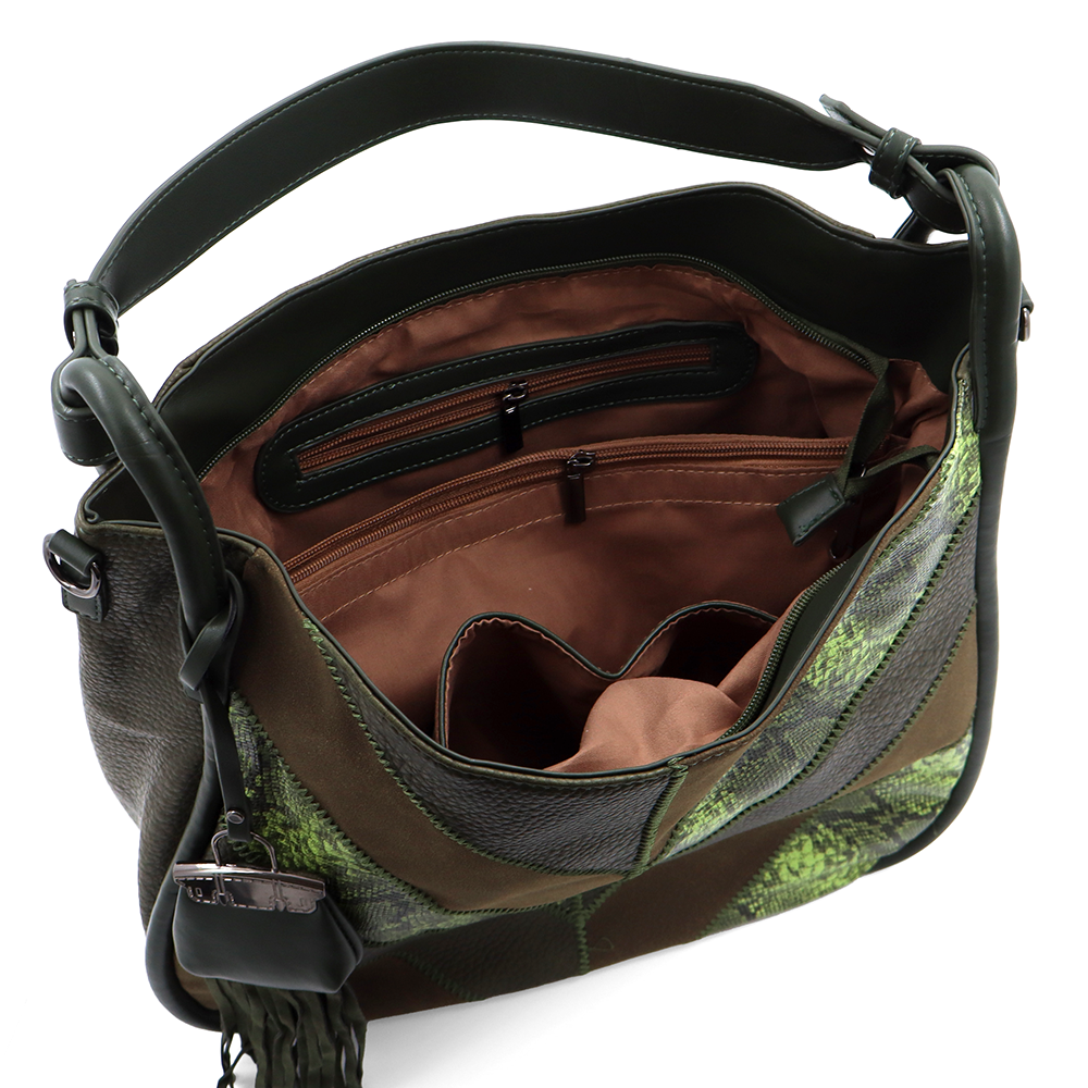Nagy méretű női táska, kígyóbőr mintás – zöld