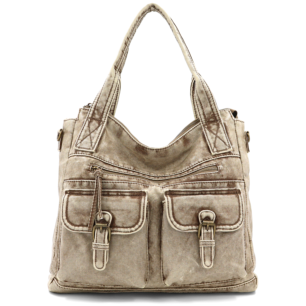 Nagy méretű női táska, vintage hatású – világosbarna