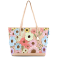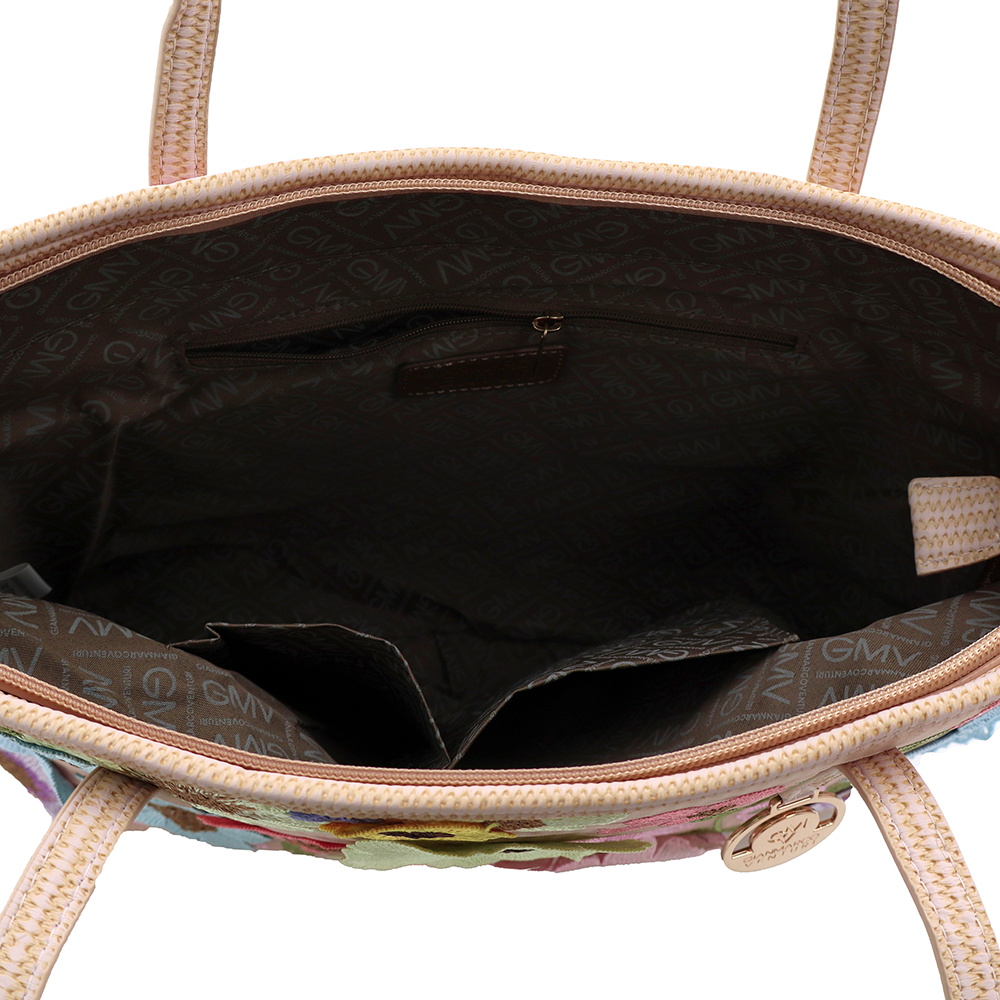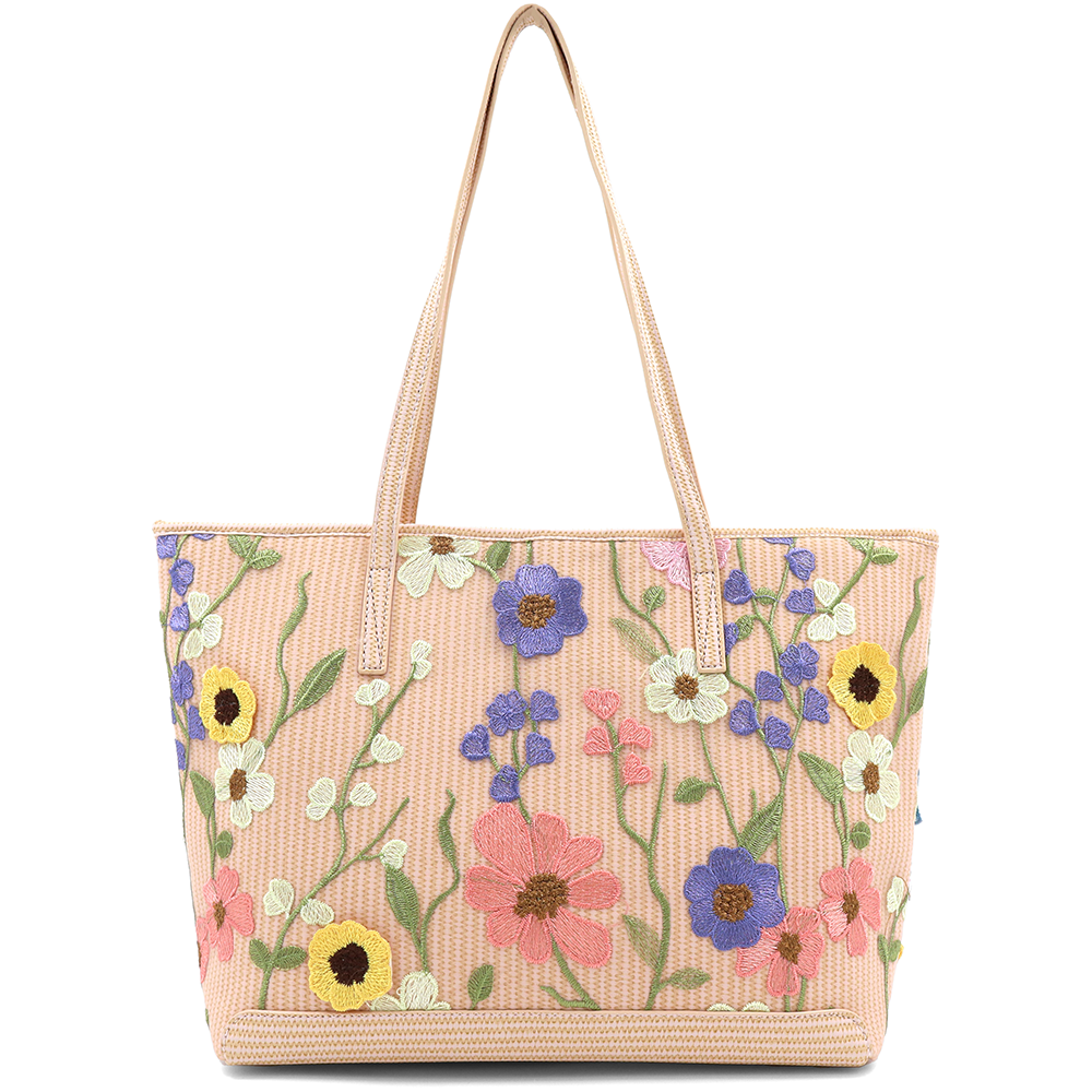 Nagy női táska típusú táska hímzett virágmintával – rózsaszín