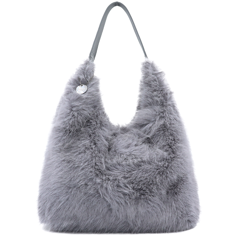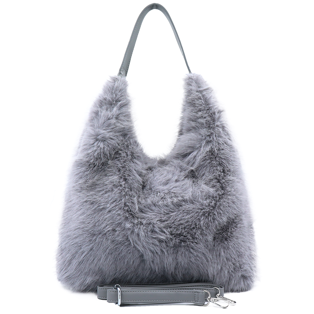 Nagy női táska típusú táska plüssből – szürke