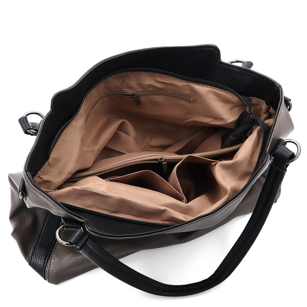- 1 db nagy belső cipzáras zseb, amely két részre osztja a táskát