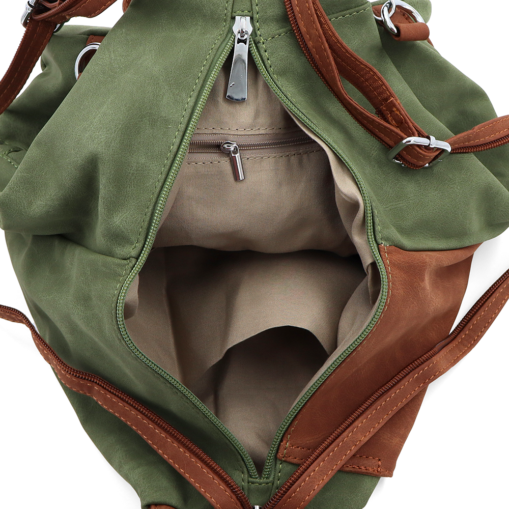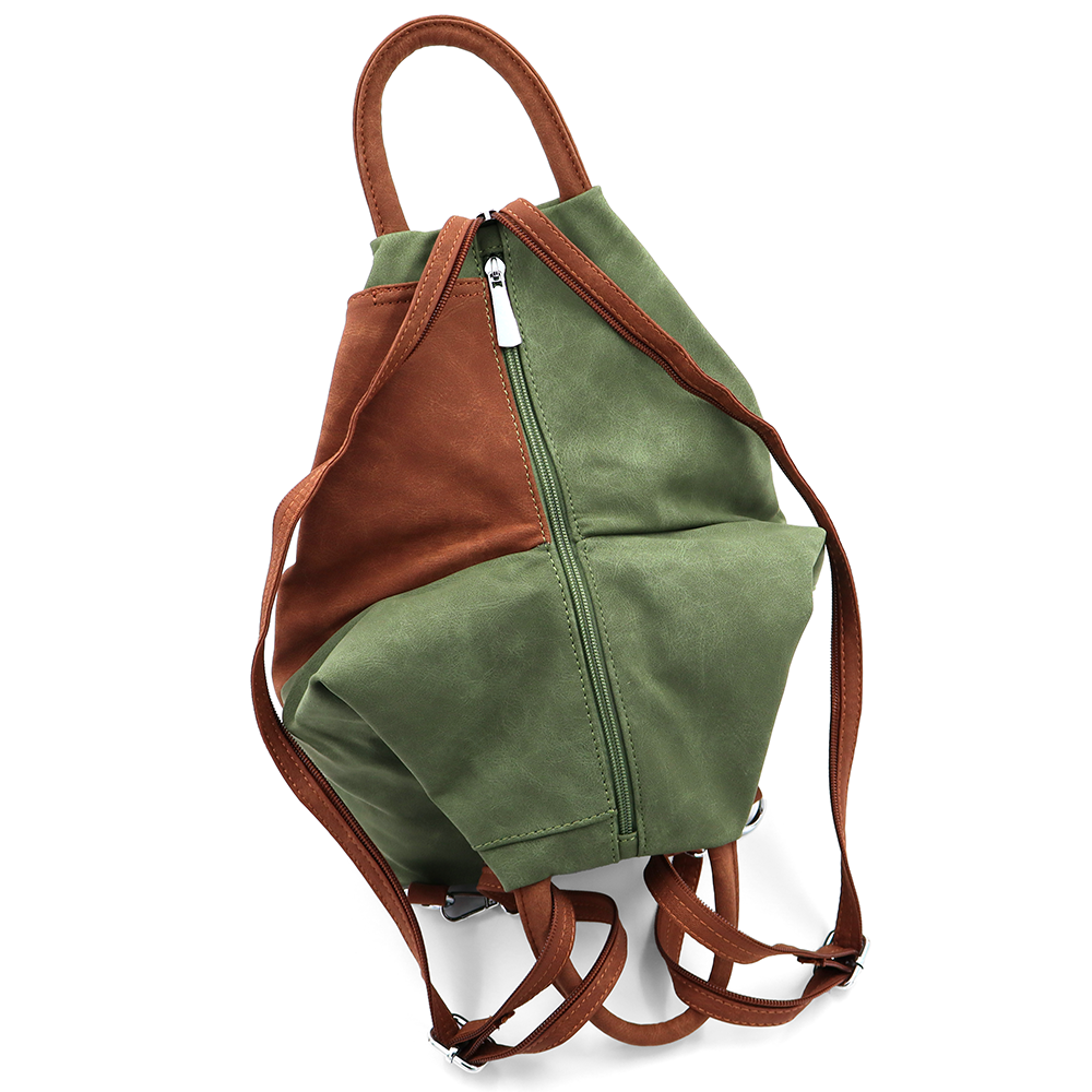 Női hátizsák titkos záródással Darina - zöld/téglabarna