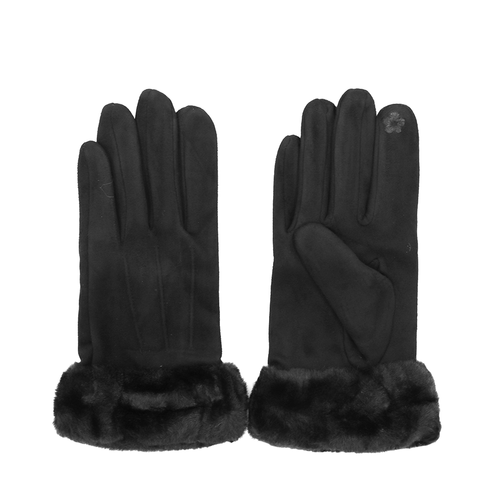 Női kesztyű műszőrme szegéllyel – fekete