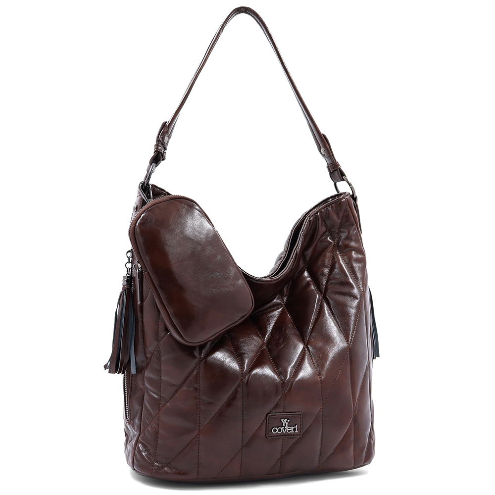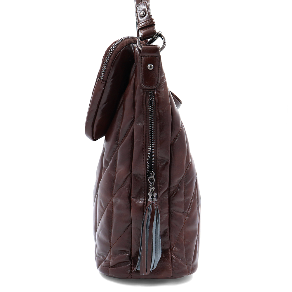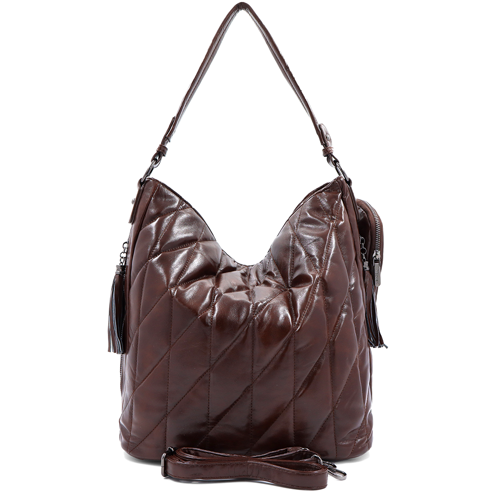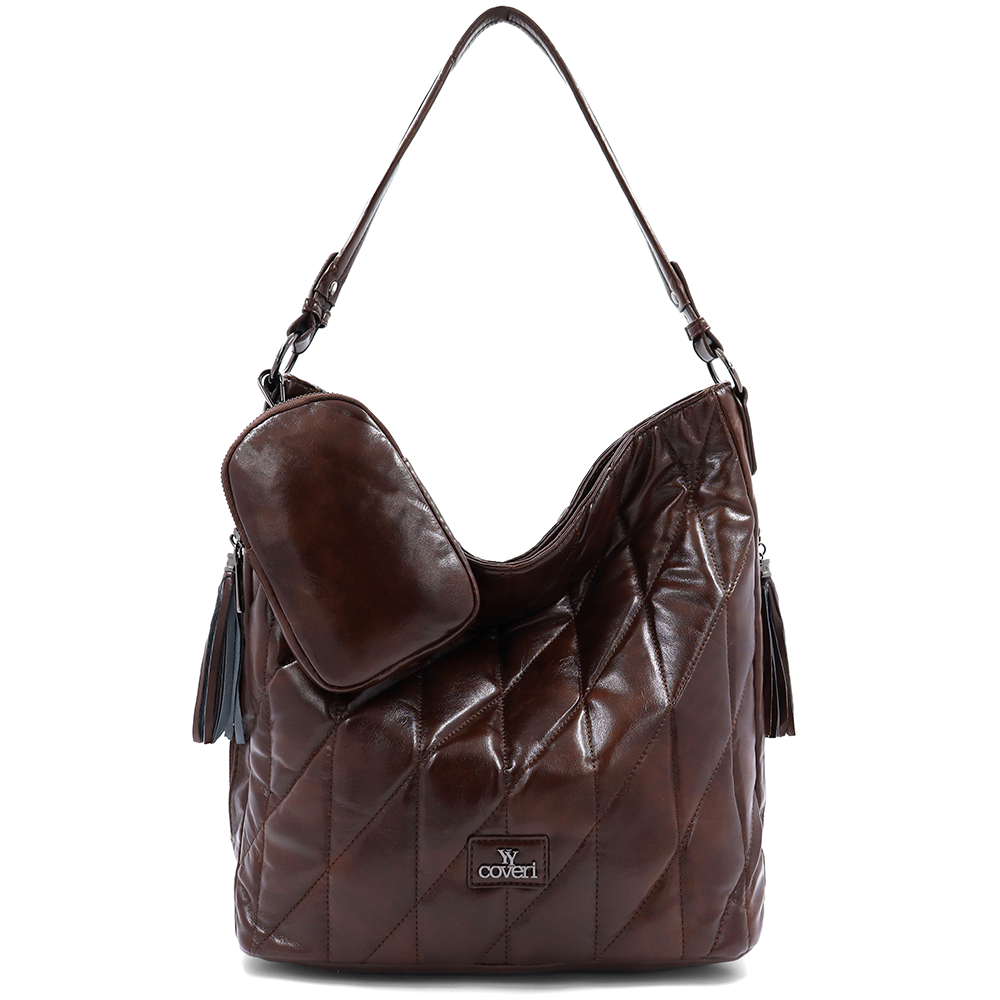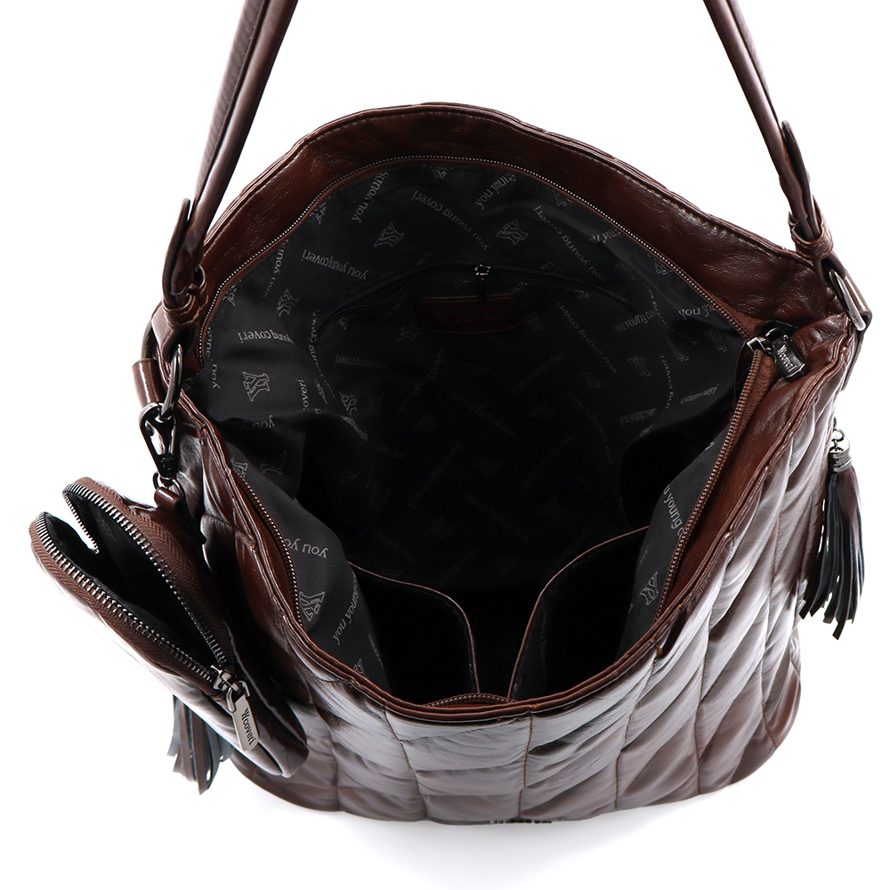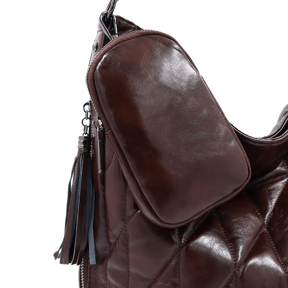Női steppelt táska típusú táska függő pénztárcával – barna