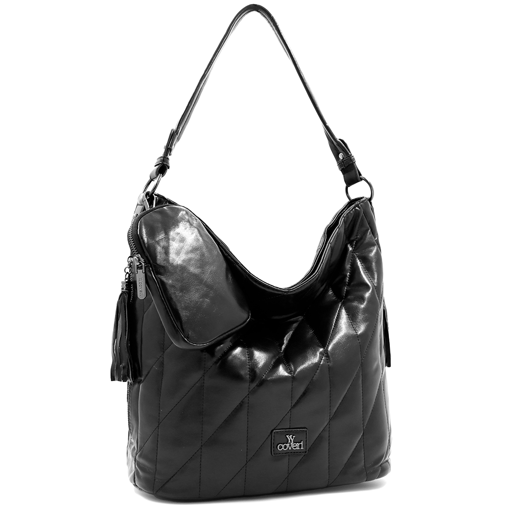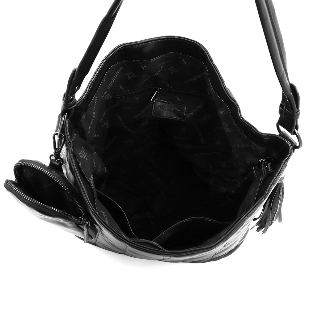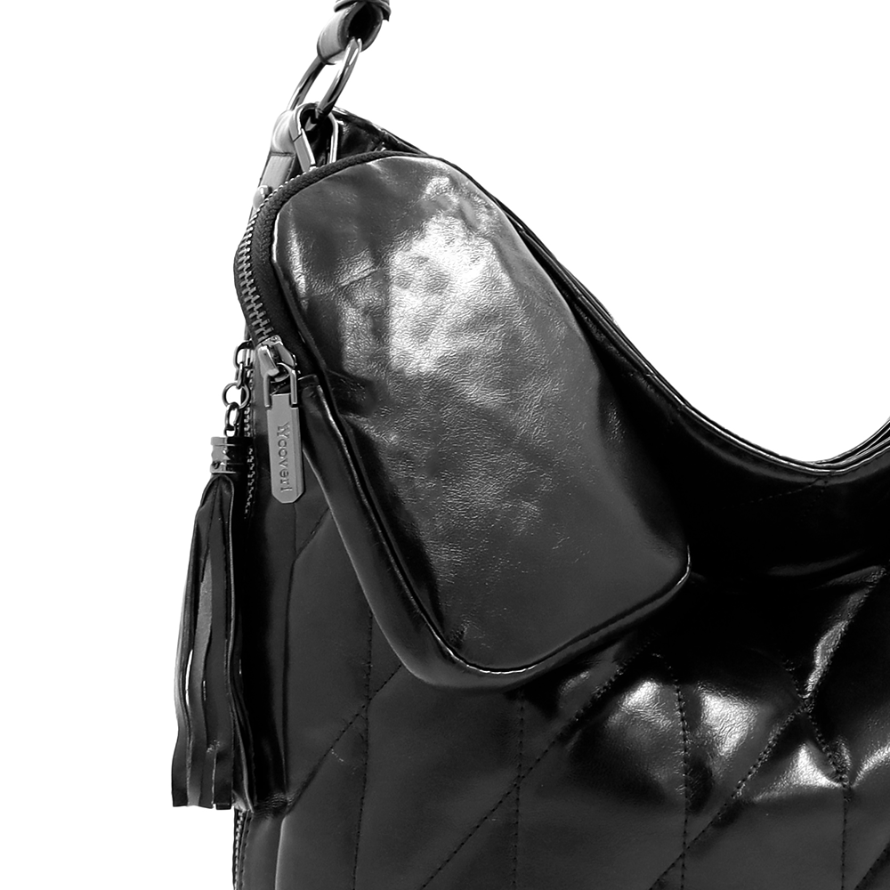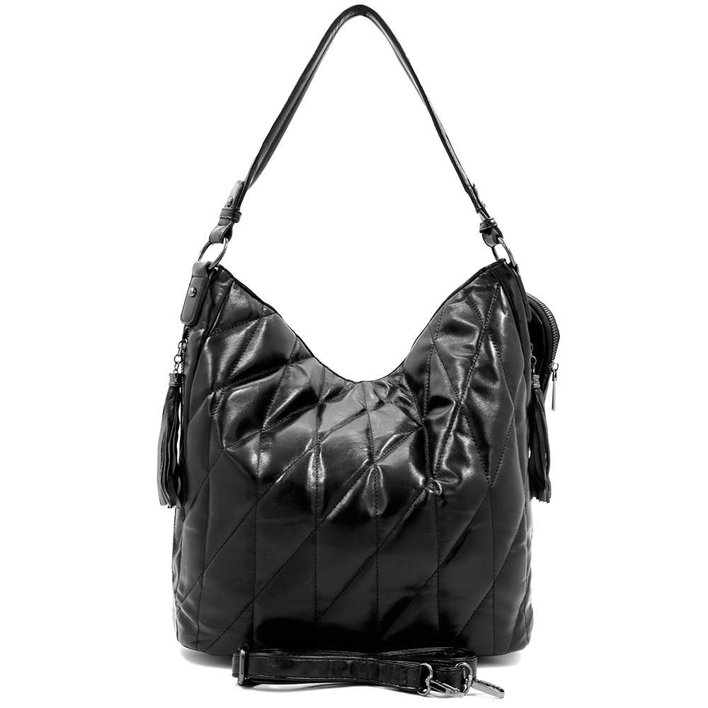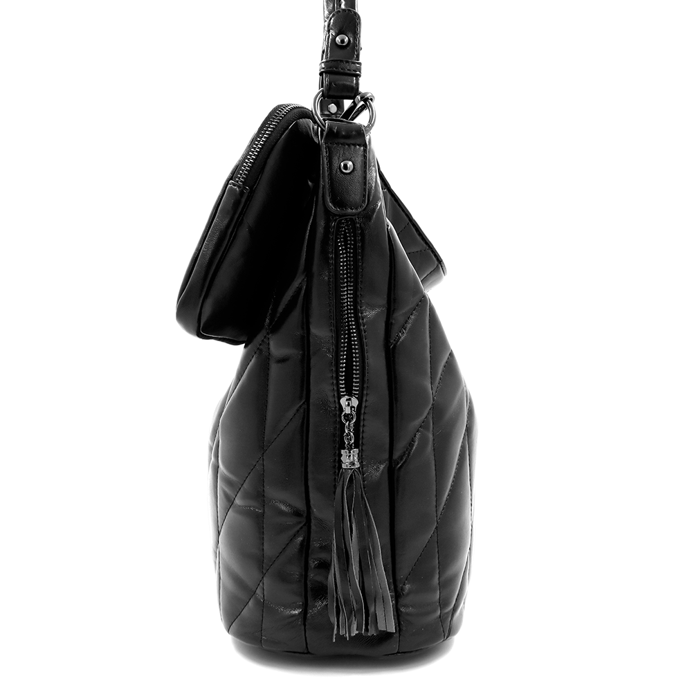 Női steppelt táska típusú táska függő pénztárcával – fekete