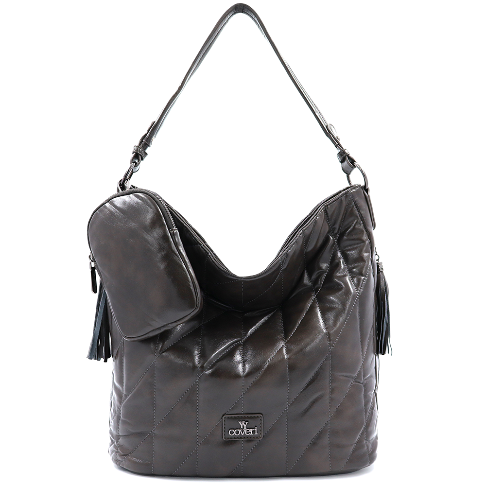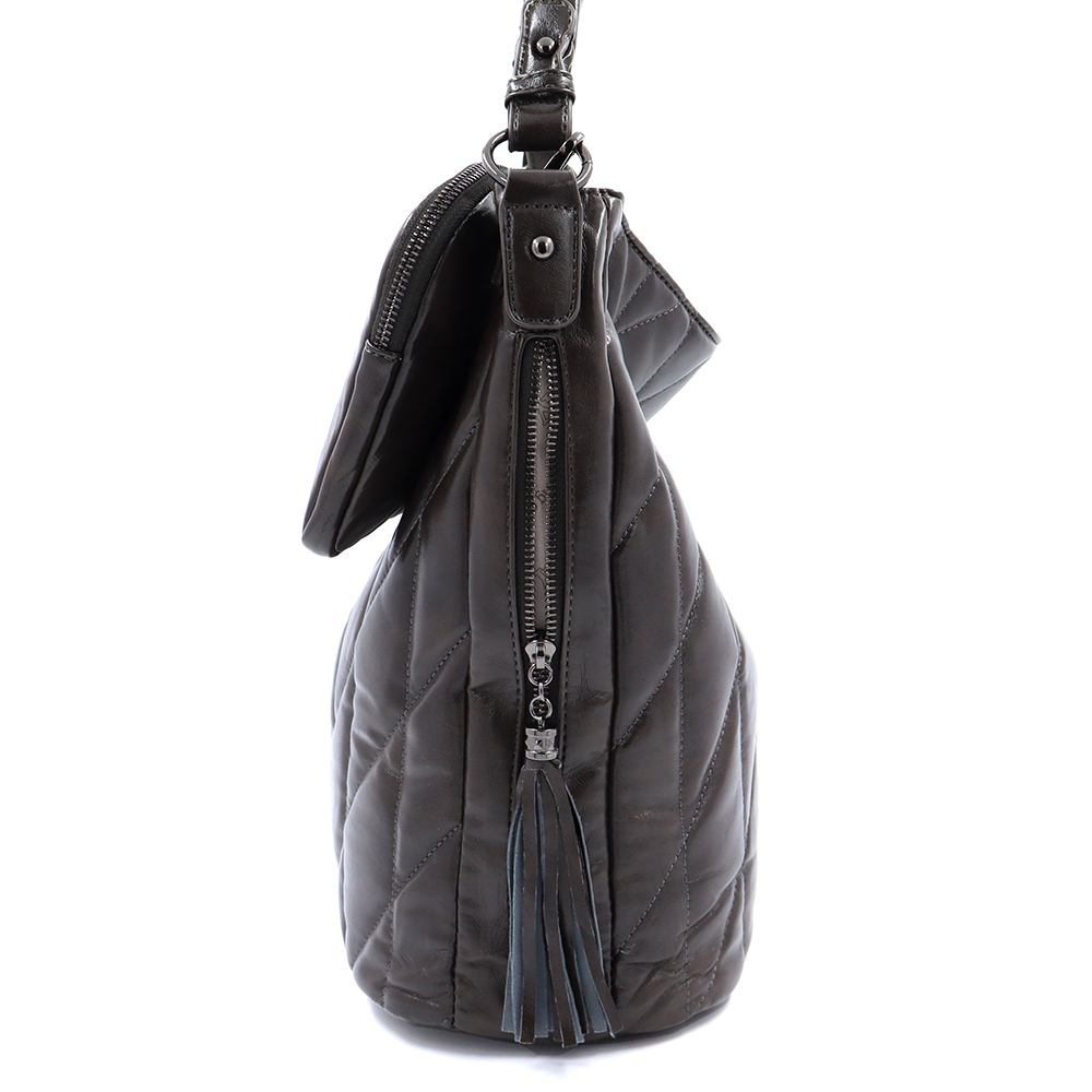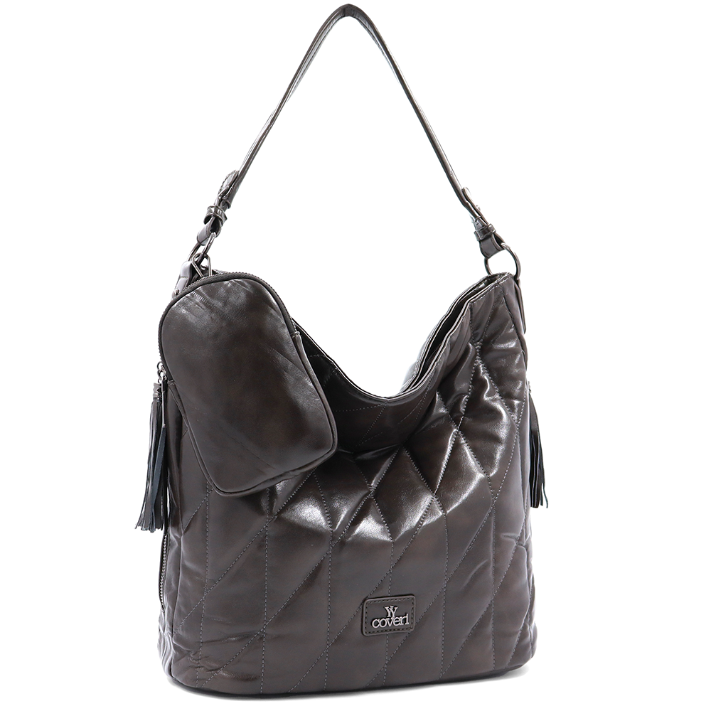 Női steppelt táska típusú táska függő pénztárcával – szürke