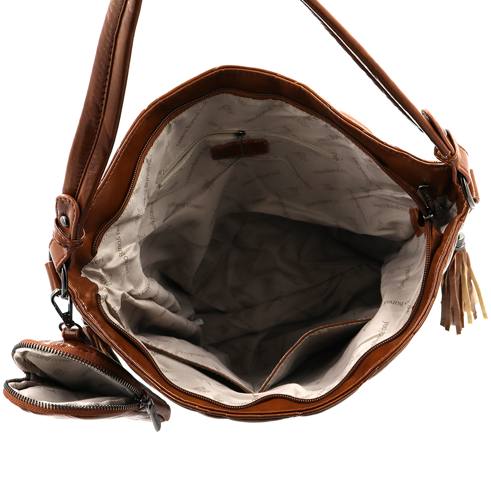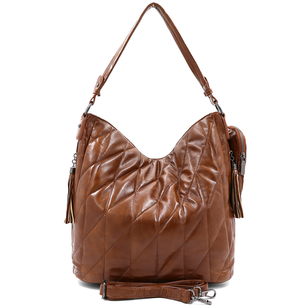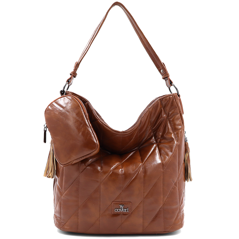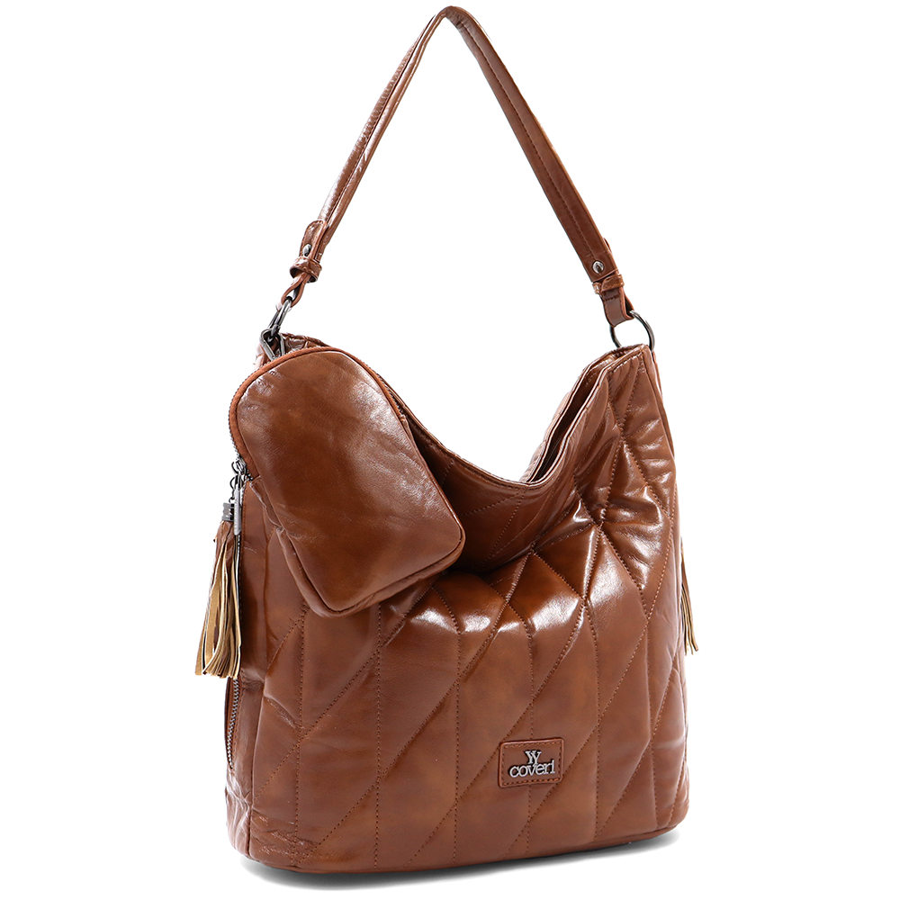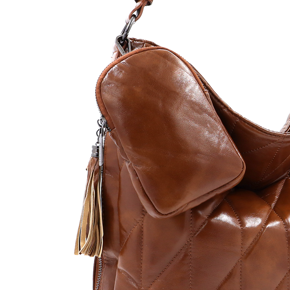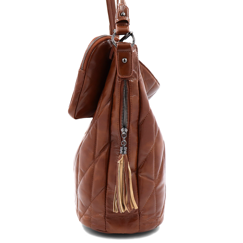Női steppelt táska típusú táska függő pénztárcával – téglabarna