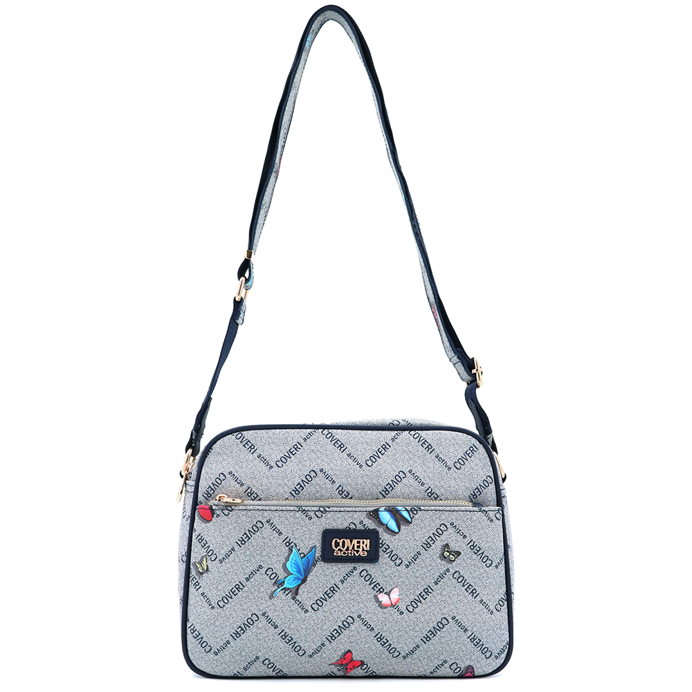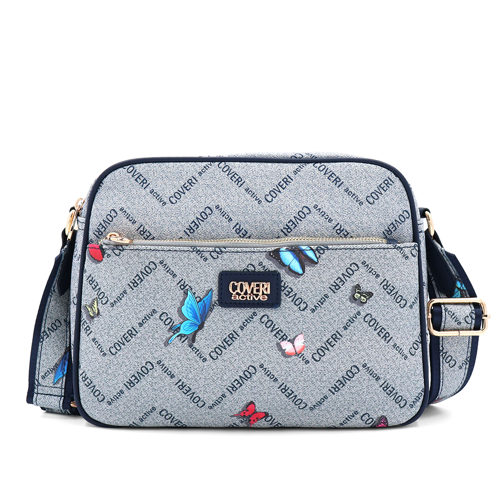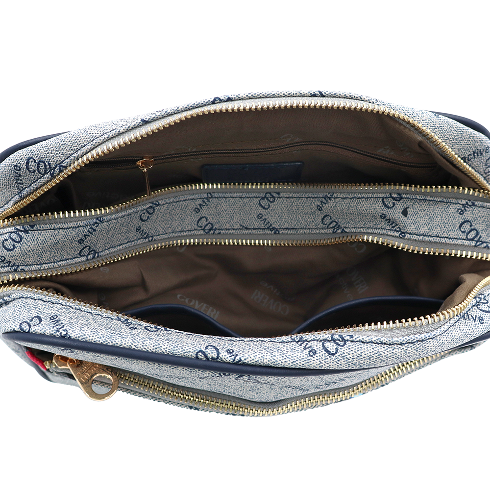 Női válltáska két rekesszel és mintával – kék