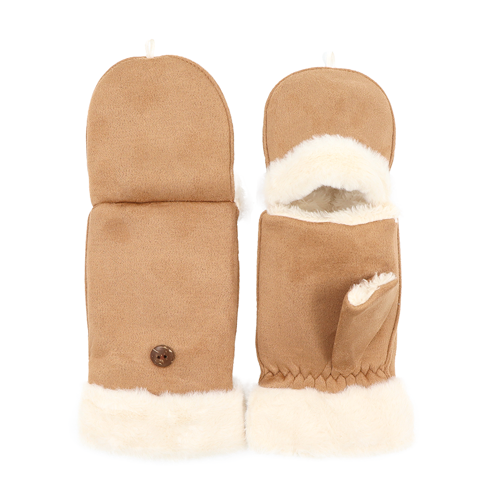 Téli, ujjatlan kesztyű lehajtható fedéllel – téglabarna
