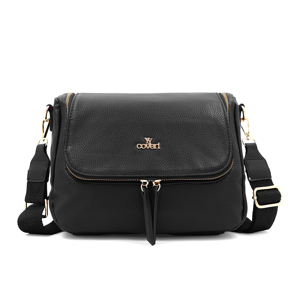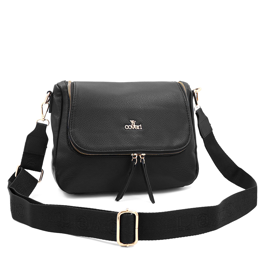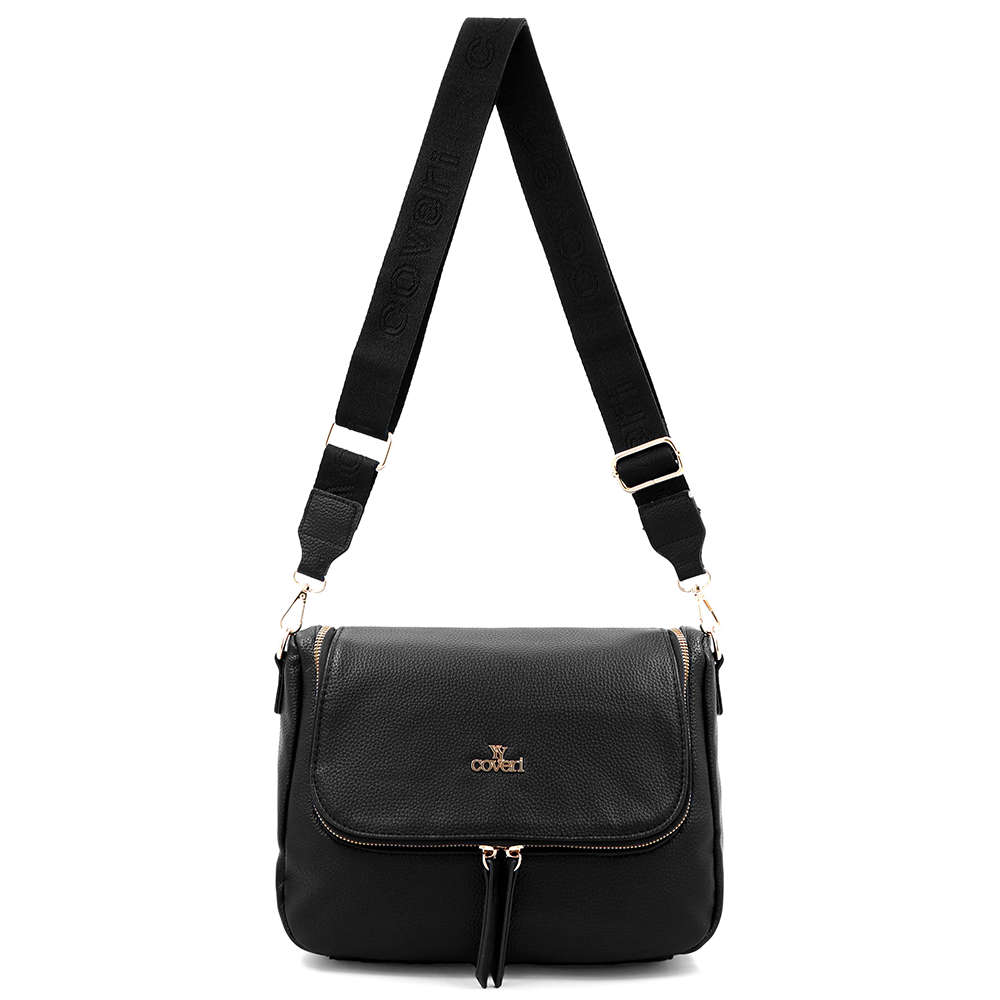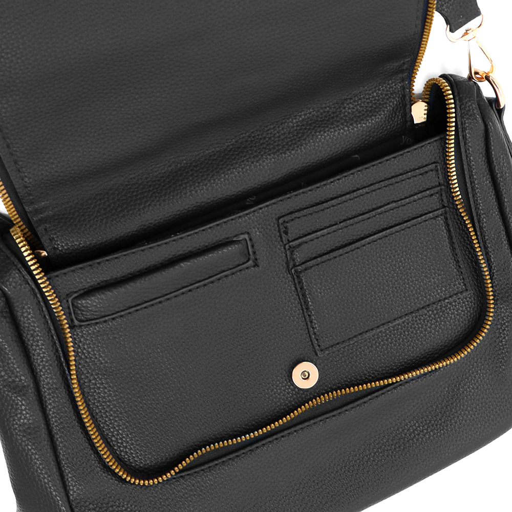 Válltáska speciális kártya-/névjegytartó rekesszel – fekete